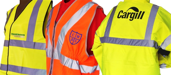 - nadruki na kamizelkach odblaskowych i bezrękawnikach;