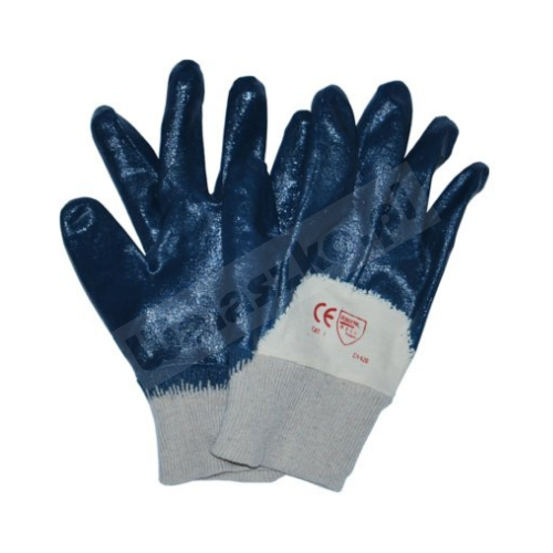 Rękawice robocze powlekane nitrylem, zakończone dzianinowym mankietem.
