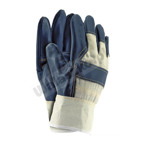 Rękawice wzmacniane skórą bydlęcą licową w ciemnych kolorach. Usztywniony mankiet w kolorze białym.