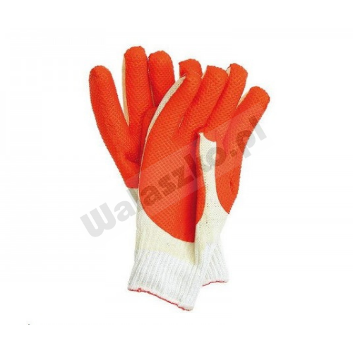 Rękawice ochronne dziane, powlekane gumą idealne dla brukarzy. Zakończone są ściągaczem.
