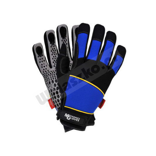 Rękawice ochronne, wykonane z wysokiej jakości miękkiej skóry syntetycznej połączonej z tkaniną.